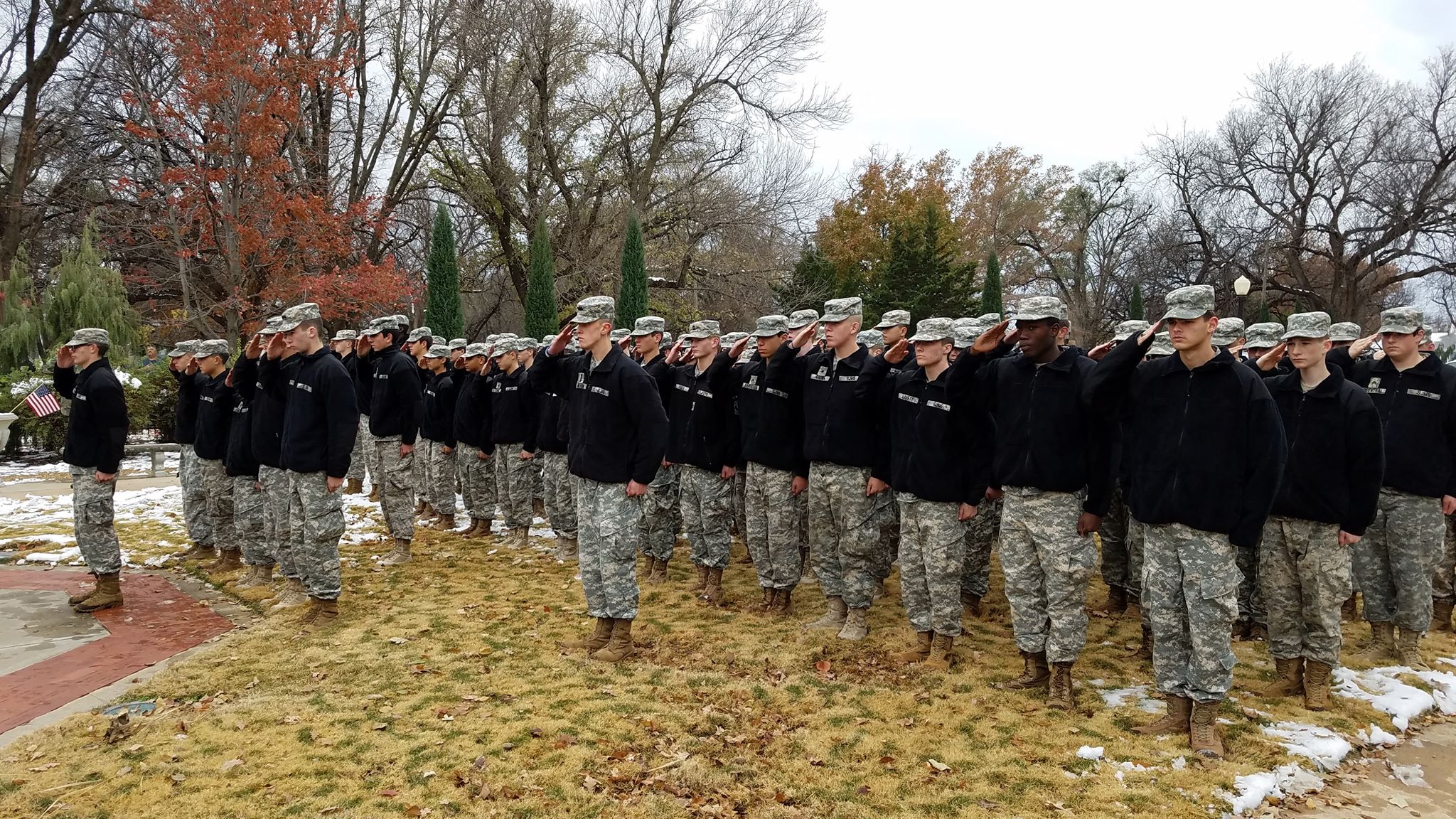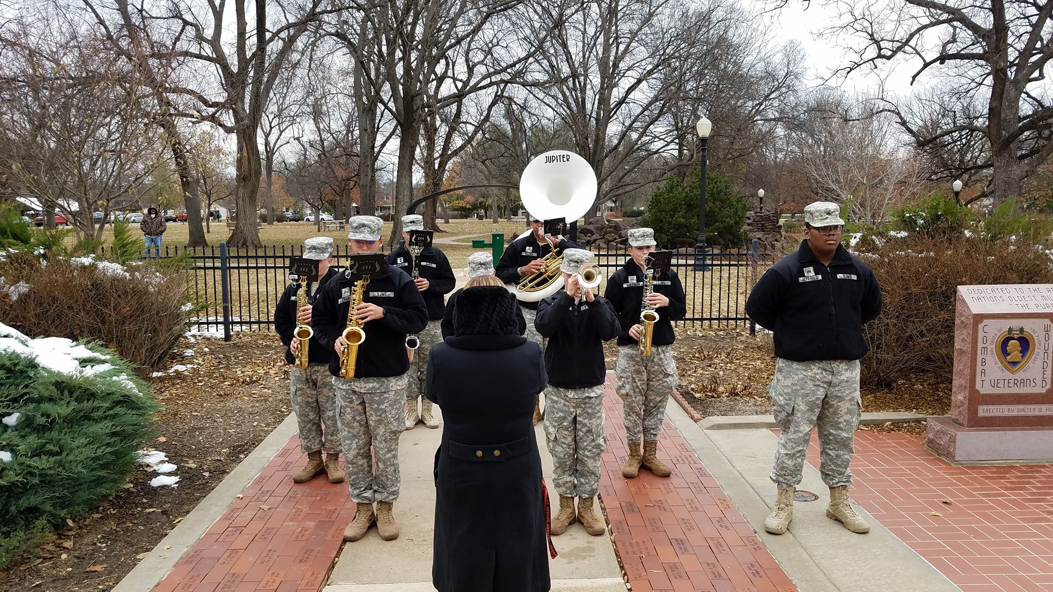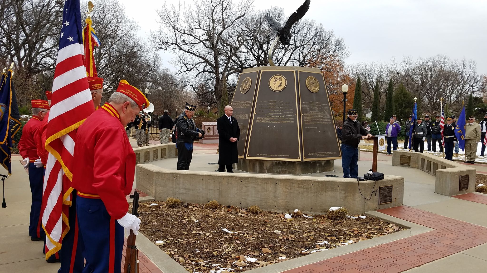 A respectful crowd braved the cold weather and gathered for Veterans Day ceremonies at the Salina / Saline County War Memorial in Sunset Park. Among those in the crowd were veterans and their family and friends, students from St. John’s Military School, and citizens simply wanting to show respect.