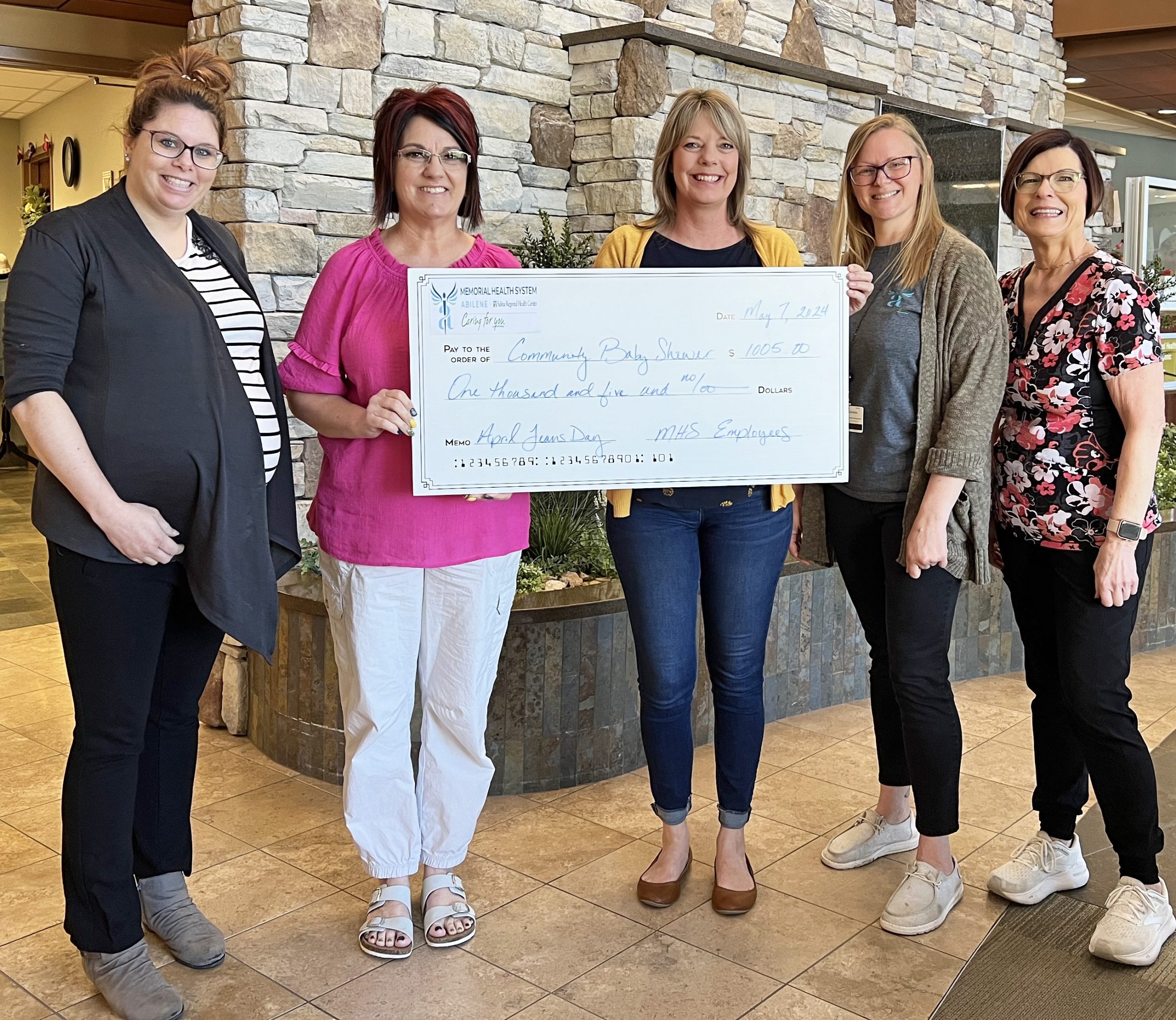 According to the organization, employees make a donation, of at least $5, and are allowed to wear blue jeans at work. A total donation of $1,005 was presented to the Community Baby Shower.