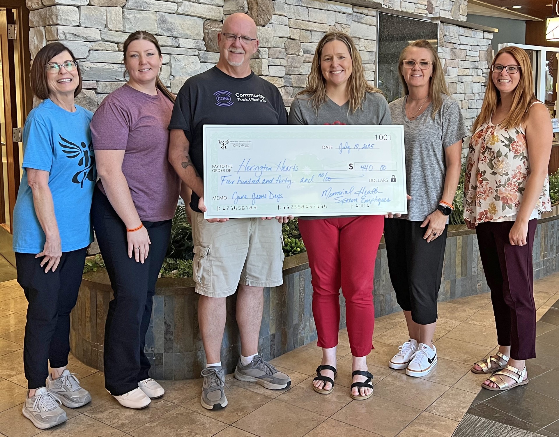 Photo via Memorial Health System : Pictured from left are: Pam Schoemaker, EOC committee member; Sarah Veach, EOC committee member; Kevin Bayes, Herington Hearts Core Community Director/Coach; Chardy Magnett, Community Liaison/Facilitator for Herington Hearts Core Community; Jenn Chaput, EOC committee member; and