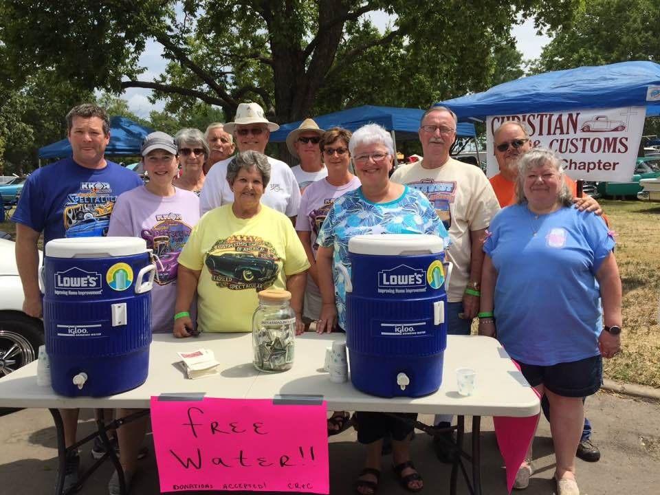 Once again, Christian Rods and Customs Club from Oklahoma City is on hand to provide a free cold drink of water and to share the Gospel of Jesus Christ. “We want to show God’s love – that’s why we’re here,” Pastor Randall Medley said.
