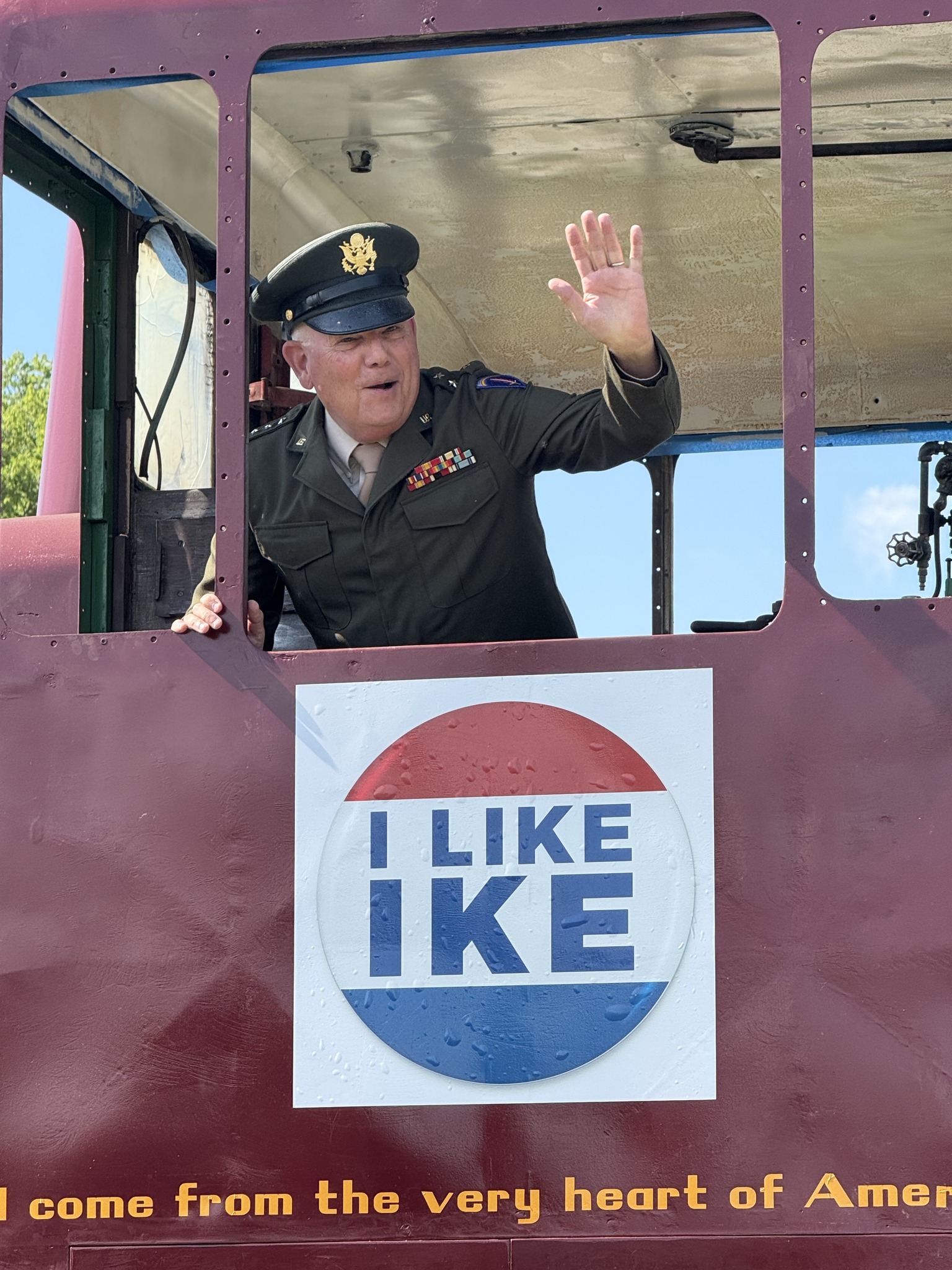 “Considering its military background, we thought it appropriate to name the engine in honor of Abilene’s favorite son, Dwight Eisenhower. So, on this D-Day weekend, the locomotive is being christened ‘Ike’ in the General’s honor.”