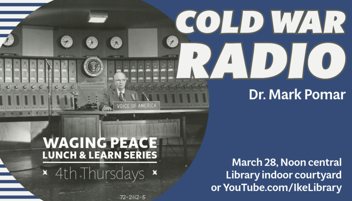 According to the organization, guest speaker Dr. Mark G. Pomar will join us virtually from the Clements Center for National Security at the University of Texas. Dr. Pomar will lead a discussion of President Eisenhower’s critical role in setting a freedom agenda in the early years of the Cold War. Following WWII, the United States sought to combat communism through a radio broadcast campaign across Europe. These broadcasts confronted the communist regimes in a ‘battle of values’ by supporting indigenous democratic movements, promoting universal human rights, explaining Western policies and values, and nurturing the independence of countries and nationalities under Soviet rule.