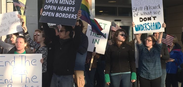 Nearly 400 people gathered Sunday at Eisenhower National Airport in Wichita to show support for people who were impacted by travel restrictions. More than 100 people demonstrated outside the Islamic Society of Wichita Sunday to speak out against the President’s order, which temporarily bans immigration from seven predominantly Muslim countries.