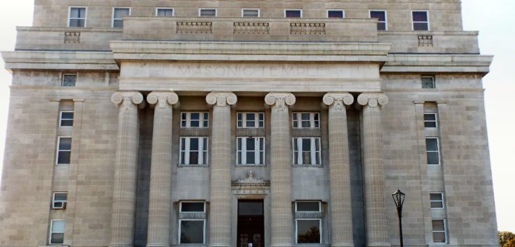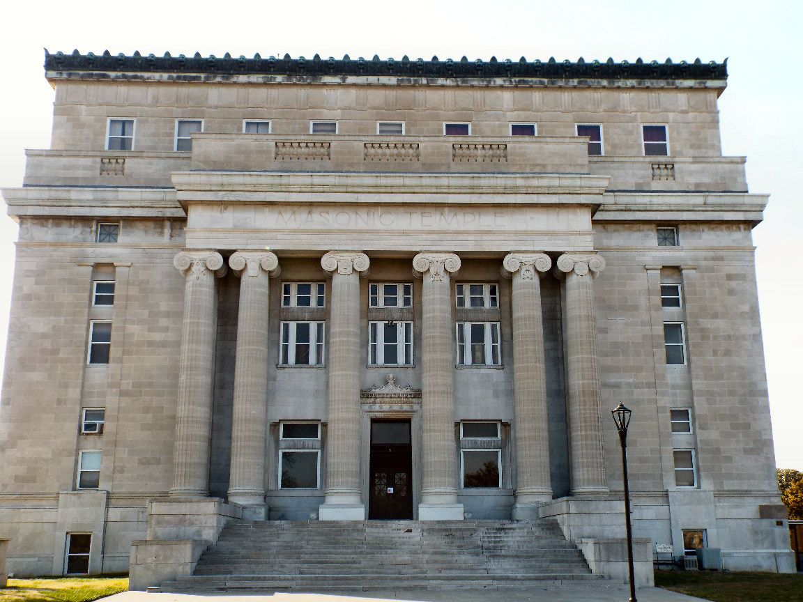 The Masonic Center (formerly known as the Masonic Temple) was started in 1922 and completed in 1927. “The Landmark of the Valley” is widely famed for its Ionic columns and row of copper gargoyles along the roof line.