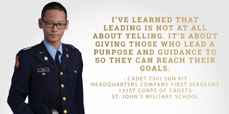 Cadet Tsui Sun Kit did not immediately tell his parents when the leadership at St. John’s Military School selected him to serve as the Company First Sergeant for Headquarters Company for the 131st Corps of Cadets.