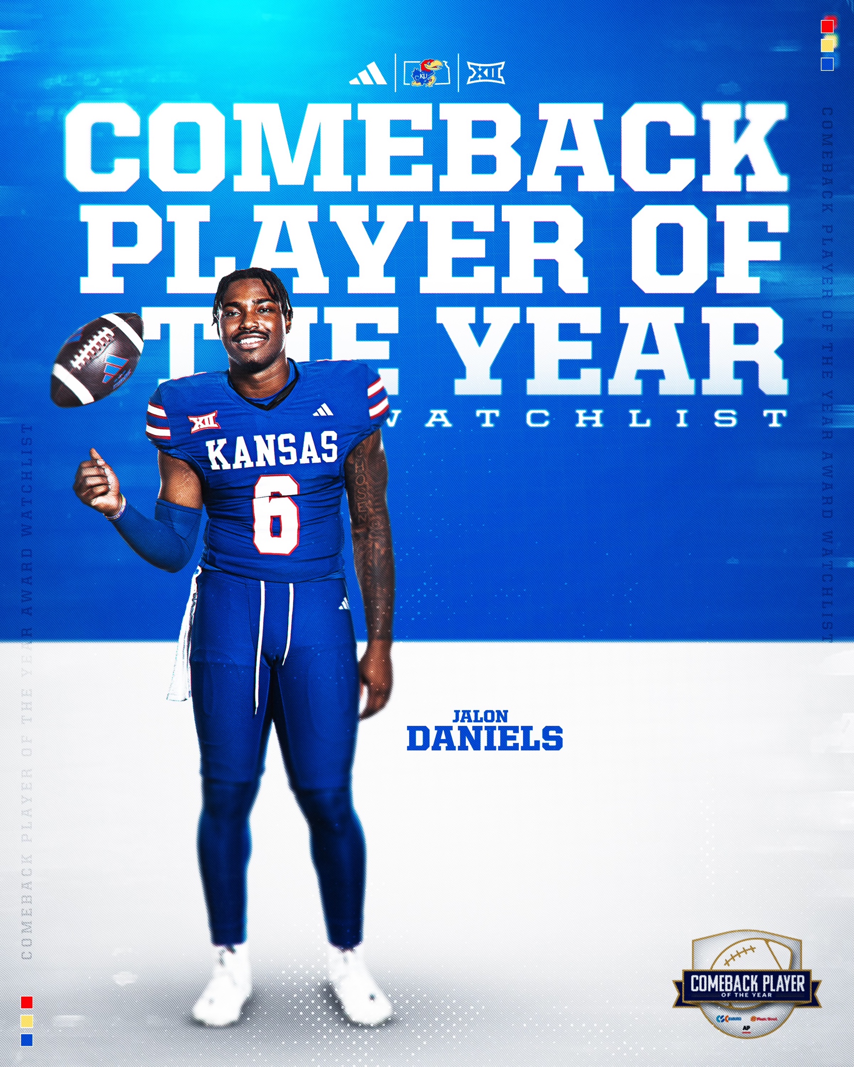 LAWRENCE, Kan. – Kansas quarterback Jalon Daniels is one of 90 college student-athletes named to the Watch List for the 2024 Comeback Player of the Year Award on Wednesday.