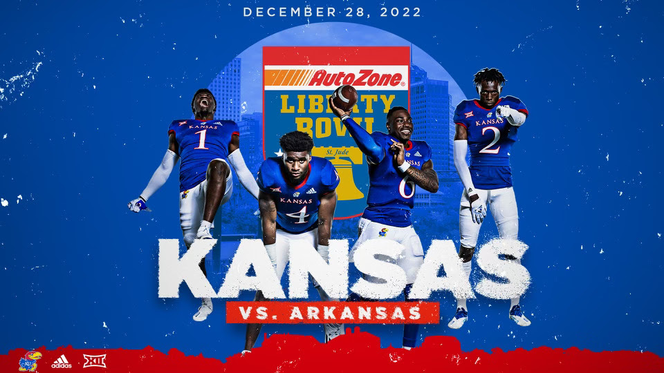 LAWRENCE, Kan. – Making their first postseason appearance since the 2008 season, the Kansas Jayhawks have accepted an invitation to play the Arkansas Razorbacks in the 64th AutoZone Liberty Bowl on December 28. The game will take place inside Simmons Bank Liberty Stadium at 4:30 p.m. CT and will air on ESPN.