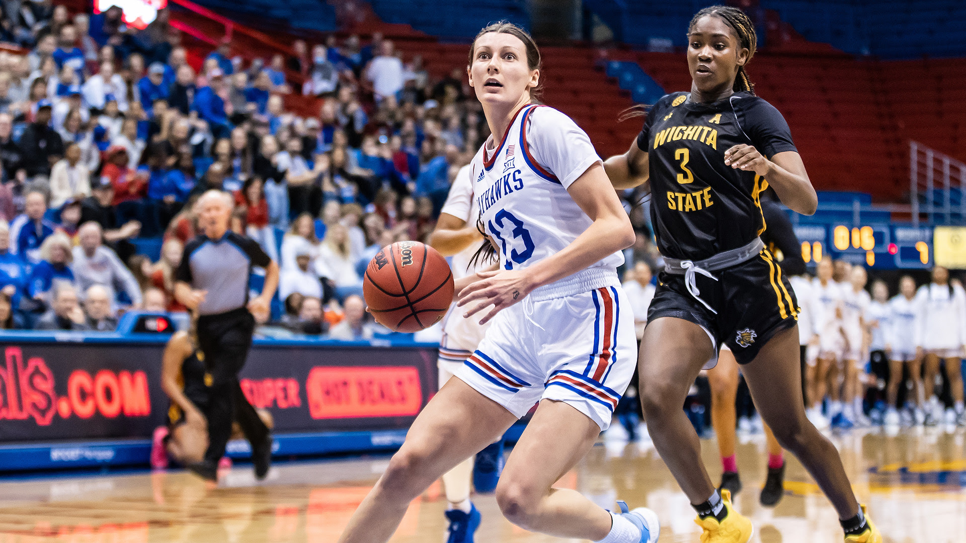 On Sunday, Kansas was led by the senior duo of Zakiyah Franklin and Holly Kersgieter, who both poured in 16 points against the Shockers. Chandler Prater also added 10 points and four rebounds, while Taiyanna Jackson posted seven points and 13 rebounds.