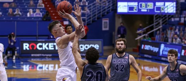 LAWRENCE, Kan. — The No. 7/5 Kansas Jayhawks won its 48-consecutive home opener, led by four scorers in double-figures, defeating Washburn, 89-54, inside Allen Fieldhouse in Lawrence, Kansas on Thursday.