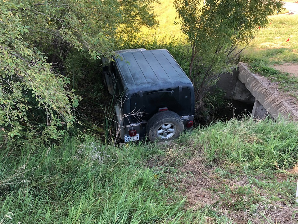 Salina Police told KSAL News at the scene a Jeep was headed south on Arnold Avenue when the driver suffered a medical condition. The Jeep veered off the road near the intersection with Jumper Road and crashed into a culvert where it became wedged.