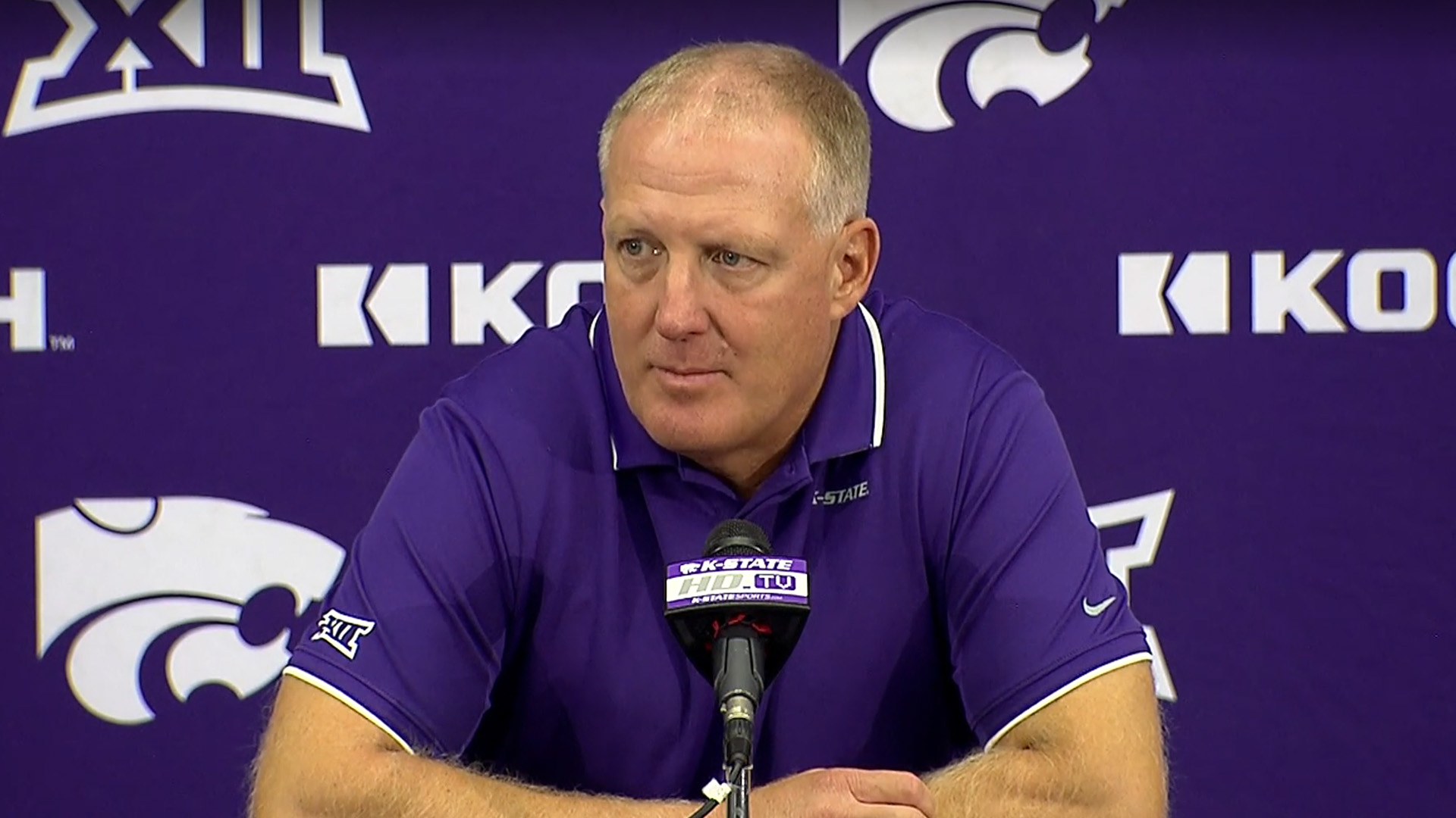 “Good afternoon, everyone. Excited to be at game week. We had our first practice yesterday, just in spiders. We’ll go full pads today and take it into our normal week. A lot of the game plan was put in last week, but still some fine tuning. Still a lot of mistakes that we’re making, especially with some of our newer players, younger guys that we need to get caught up to speed. Bottom line is we need to play. We need to play somebody else and quit banging around with each other. Our plan is to play an awful lot of guys, especially on special teams, because we have 39 new guys on our roster, and we need to get them acclimated to playing college football at K State. So, it’ll be exciting week for us.”