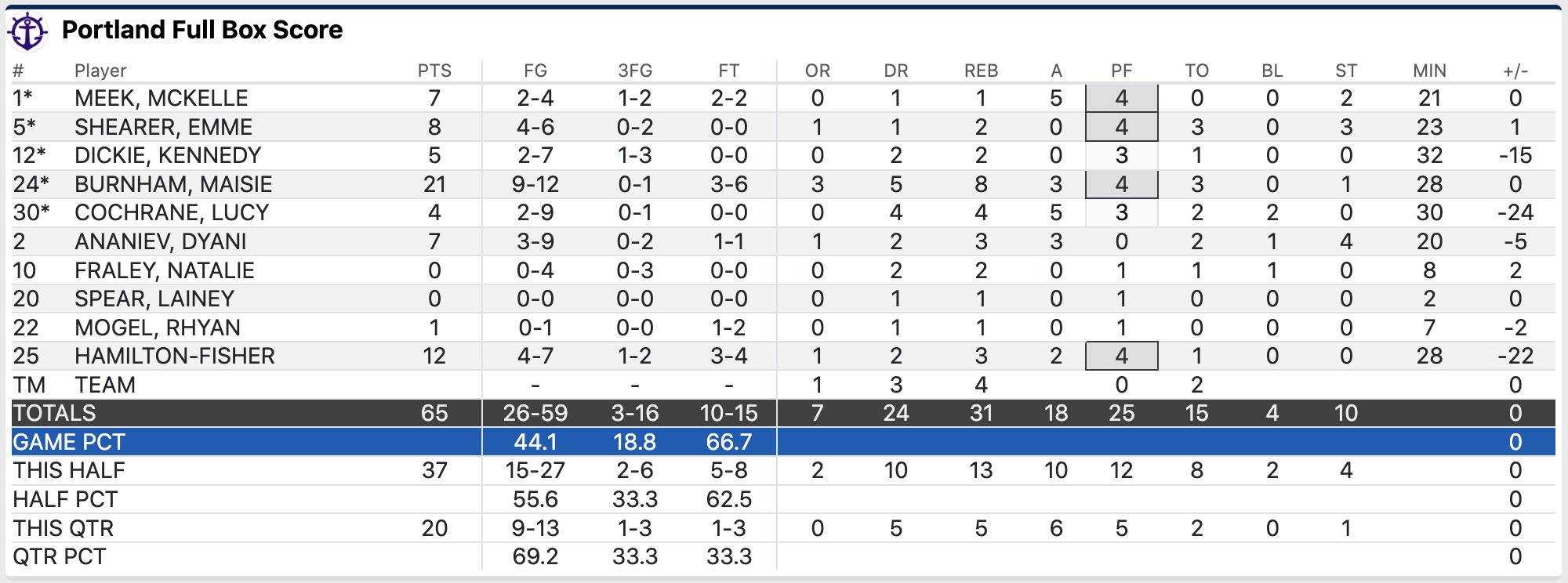 POSTGAME STATS