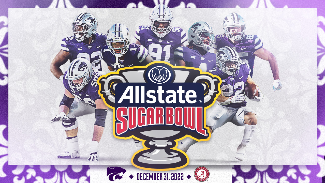 MANHATTAN, Kan. – Fresh off a 31-28 overtime victory in the 2022 Dr. Pepper Big 12 Championship, ninth-ranked Kansas State earned a bid into the 89th annual Allstate Sugar Bowl and will face No. 5 Alabama on Saturday, December 31, inside Caesars Superdome in New Orleans, Louisiana as the College Football Playoff Selection committee announced the New Year’s Six Bowl matchups on Sunday. The game will kick off at 11 a.m., and be shown on ESPN.