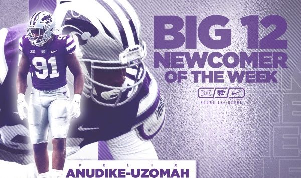 MANHATTAN, Kan. – Kansas State defensive end Felix Anudike-Uzomah was honored following his impressive performance against Southern Illinois as he has been named the Big 12 Newcomer of the Week, the conference office announced Monday.