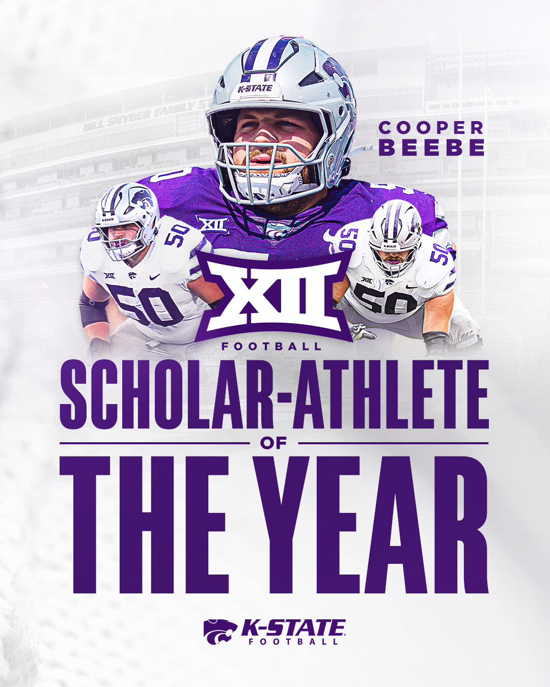 MANHATTAN, Kan. – Kansas State’s Consensus All-American offensive lineman Cooper Beebe added to his off-the-field accolades on Thursday, as he was named the 2023 Big 12 Football Scholar-Athlete of the Year by a vote of the league’s head coaches, the conference office announced.