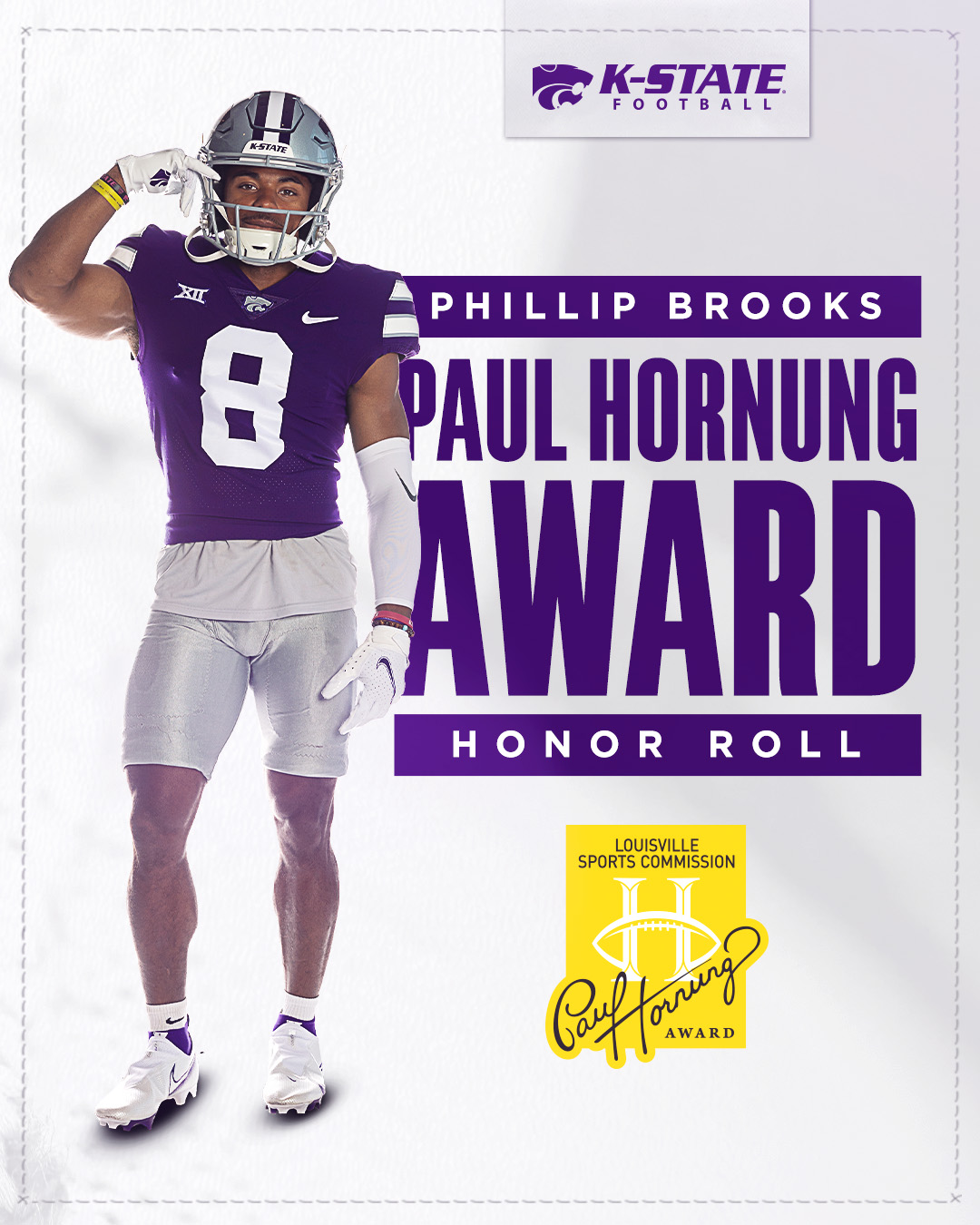 MANHATTAN, Kan. – After tallying 178 all-purpose yards and two touchdowns last Saturday in Kansas State’s 42-13 victory over Troy, wide receiver/kick returner Phillip Brooks was named to the Paul Hornung Award Honor Roll, the Louisville Sports Commission announced Tuesday.