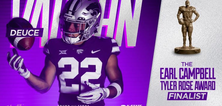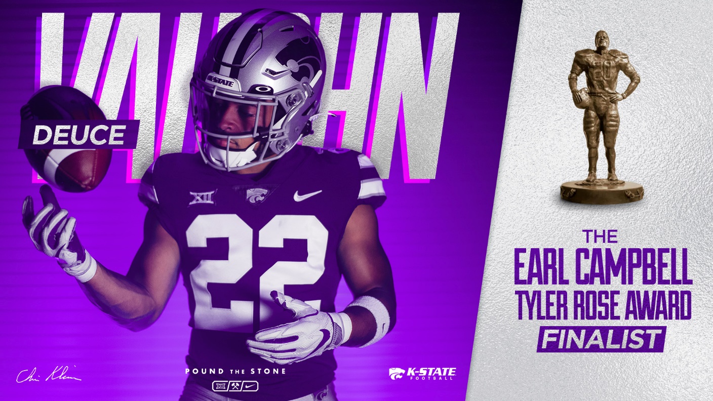 MANHATTAN, Kan. – Following an impressive regular season that saw him total over 1,000 rushing yards and 400 receiving yards, Kansas State sophomore running back Deuce Vaughn has been named one of five finalists for the Earl Campbell Tyler Rose Award, SPORTyler announced Tuesday.