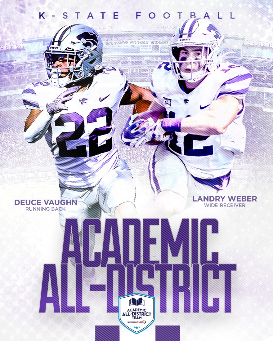 MANHATTAN, Kan. – Kansas State senior wide receiver Landry Weber and sophomore running back Deuce Vaughn have been named to the 2021 CoSIDA Academic All-District 7 team, the College Sports Information Directors of America has announced.
