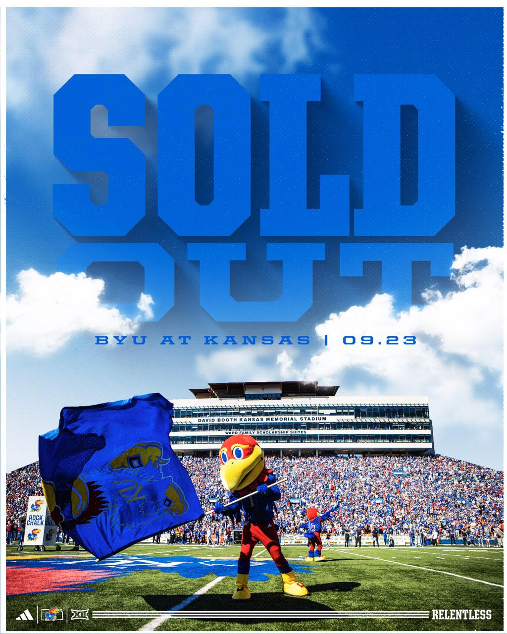 The sellout comes after Kansas’ 3-0 start of the season, which is the second consecutive 3-0 start. Kansas’ last sellout came on October 8, 2022, when Kansas hosted ESPN’s College Gameday before taking on TCU. Additionally, Kansas’ sellout against BYU will be the earliest in a season since 2009 (vs. Duke, Sept. 19, 2009).