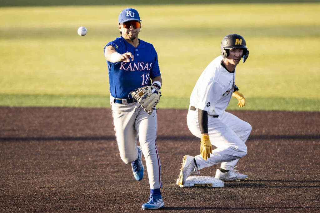 COLUMBIA, Mo. – Kansas scored four runs in the ninth inning and had the go-ahead run on base, but the Missouri Tigers held on to defeat the Jayhawks 9-7 at Taylor Stadium Tuesday night.