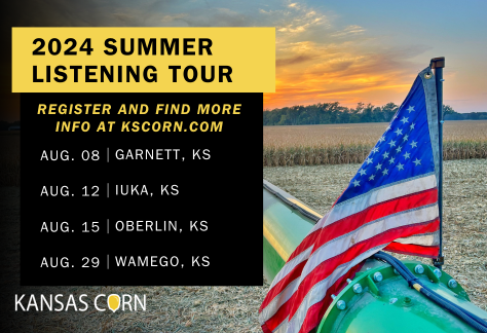 Kansas corn farmers are invited to Kansas Corn’s Summer Listening Tour, hosting dinners in four Kansas communities in August.