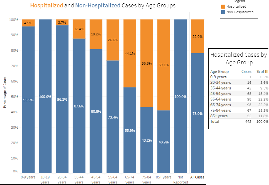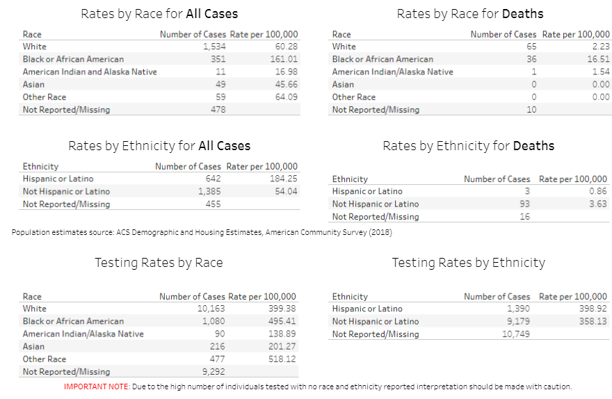 - Monday, April 20: 1,986 cases of COVID-19, 100 deaths and 16,775 people have tested negative for the disease.
