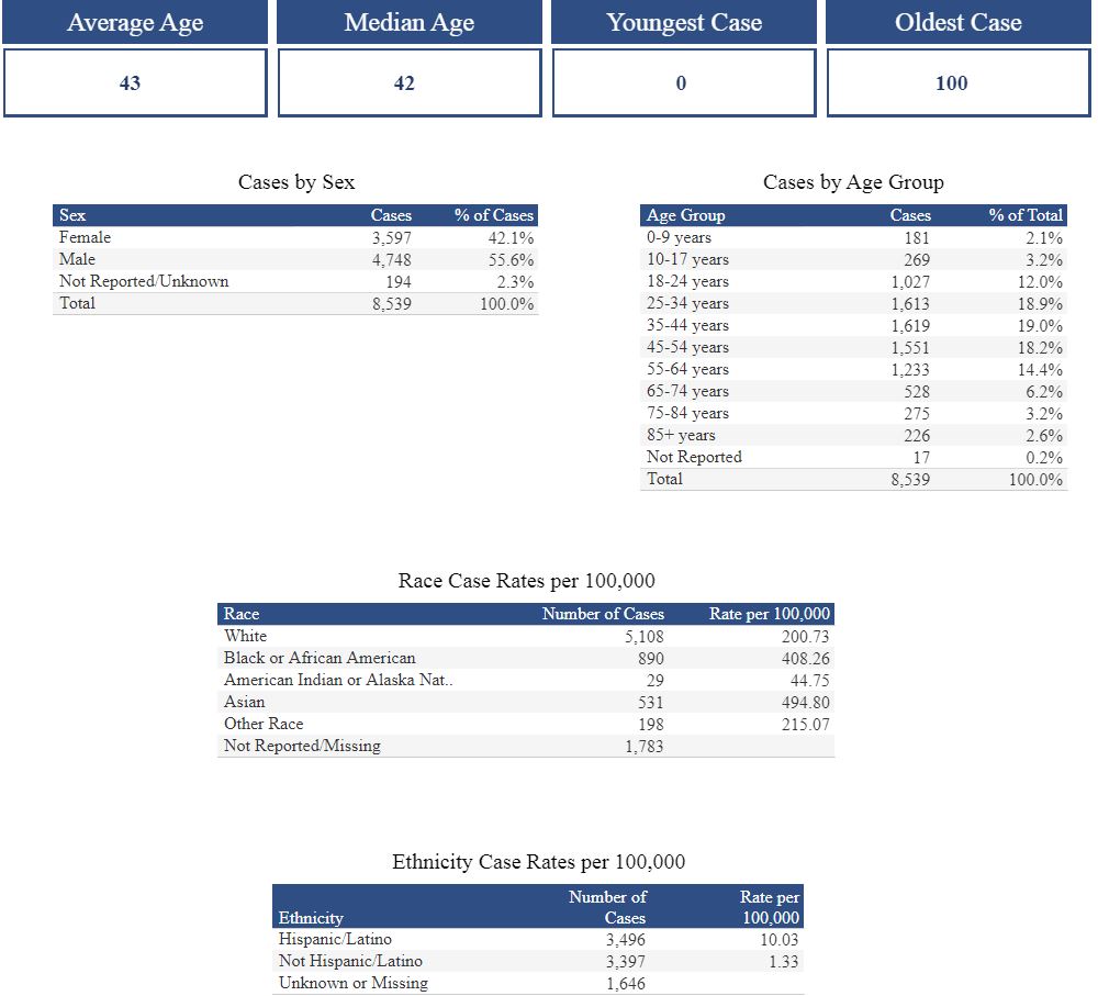 - Age and demographics of cases