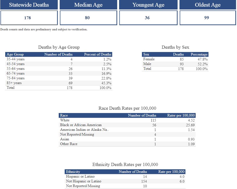According to the Kansas Department of Health & Environment, the latest information has been released at 9 a.m. Wednesday. In Kansas, 8,539 people have contracted the virus, with 178 statewide deaths.
