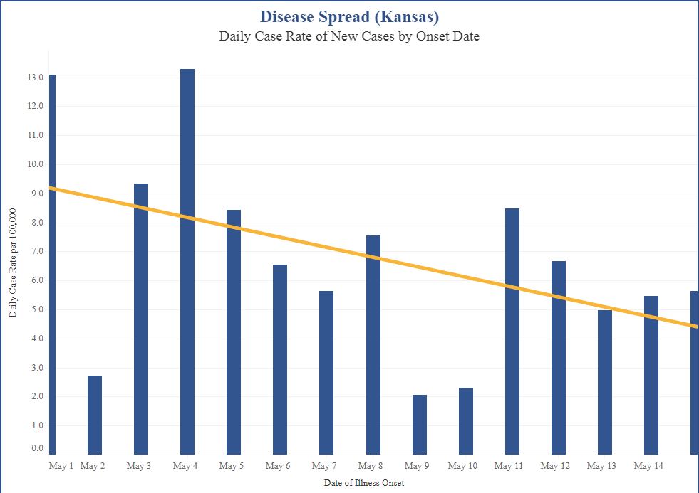 Kansas continues its steady rise in new cases of COVID-19 with hot spots in the southwestern portion of the state.