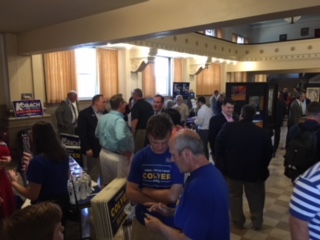 Hundreds of well-wishers, supporters and citizens watched; wearing clothing with slogans, pins and stickers of their favorite candidate as four of the men up for the GOP nomination for Kansas Governor spread their message at the Salina Innovation Center, in downtown. The event was hosted by the First Congressional District in conjunction with the Republican State meeting held the same day.