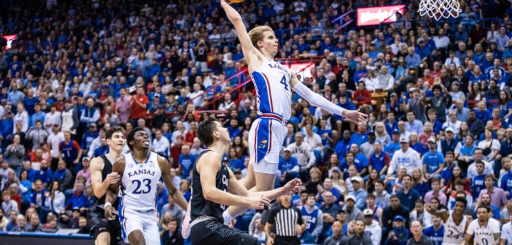 After a back and forth start to the game, KU built a 13-10 lead. Kansas went on to stretch that lead with a 12-2 run to make the score 25-12 with 8:57 remaining in the half. The Jayhawks would lead by as many as 16 points in the first half and go into the break with a 46-33 advantage. Wilson had 15 points at the half, while Dick added 12 points of his own.