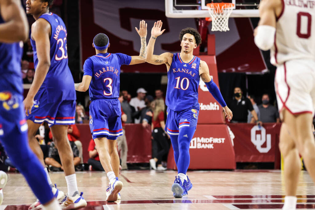 NORMAN, Okla. – In what was a back-and-forth battle, the No. 7/7 Kansas Jayhawks outlasted the Oklahoma Sooners in the final minute, 67-64, inside Lloyd Noble Center in Norman, Oklahoma on Tuesday evening.