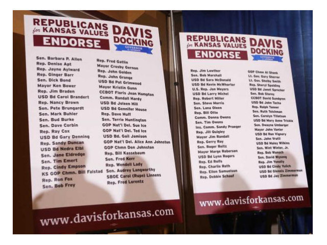 Democratic challenger Paul Davis had a news conference Tuesday to announce the formation of Republicans for Kansas Values. The list of participating Republicans was led by Praeger, who has clashed with Gov. Sam Brownback on health care policy.