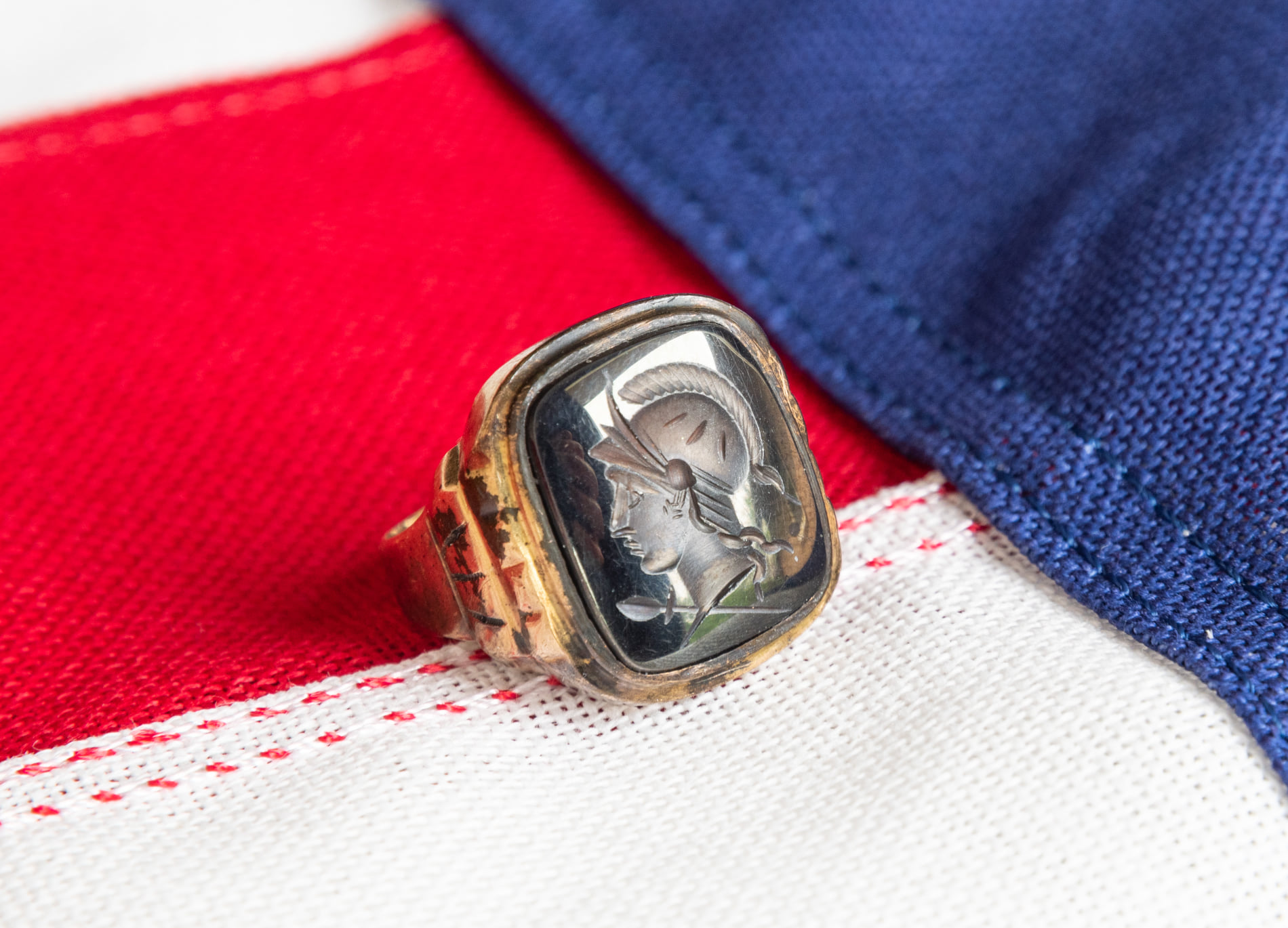 They requested the ring be returned to Sgt. Domer’s family, and Moran met with the DPAA Director again to submit an official request to return the ring to Kansas. The family was able to locate a photograph of Sgt. Domer wearing the ring right before he was deployed to the Pacific. Following the proper approvals and this evidence connecting Sgt. Domer to the ring, the ring was delivered to the family last year.