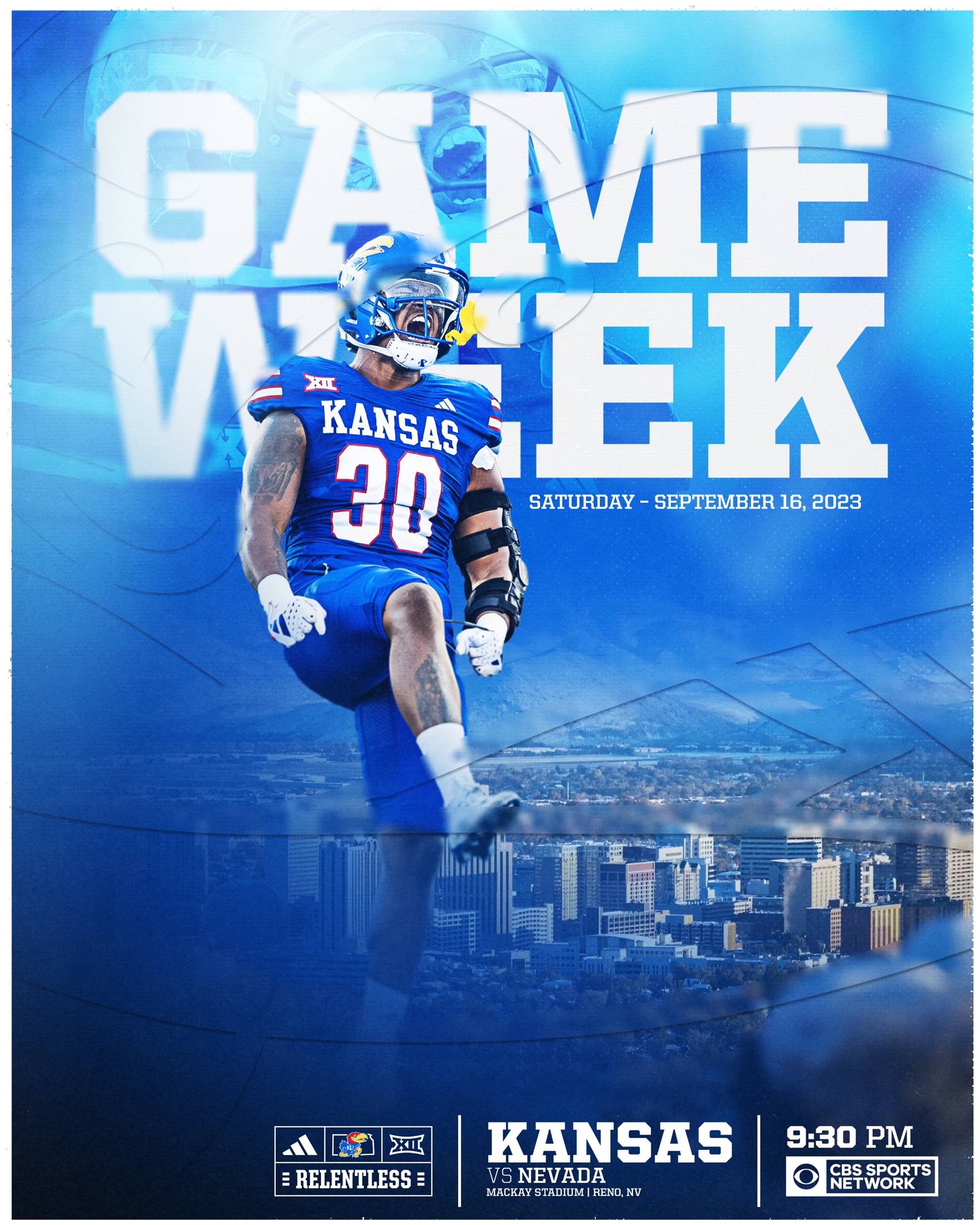 LAWRENCE, Kan. – Fresh off a 2-0 start to the 2023 season, Kansas football will make its first road trip of the season to Nevada on Saturday to take on the Wolfpack at Mackay Stadium in Reno. Kickoff is slated for 9:30 p.m. CT on CBS Sports Network.