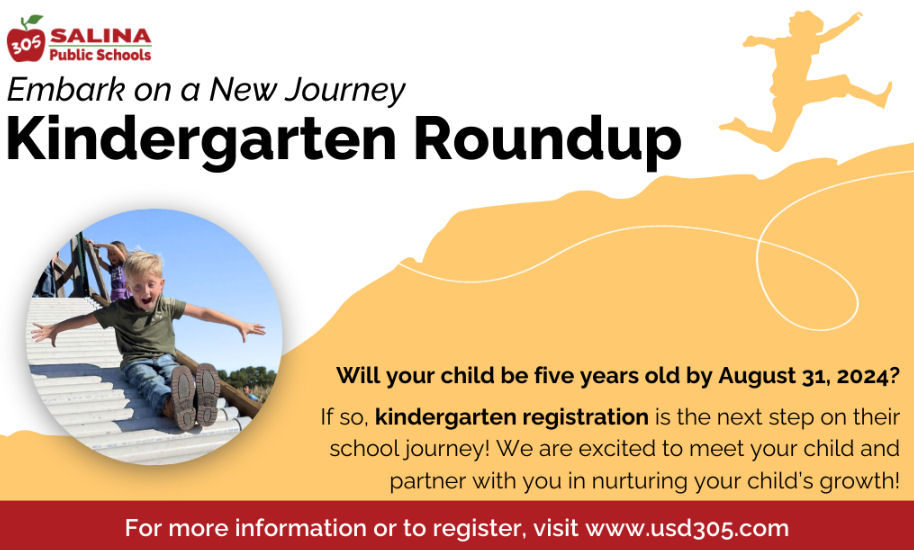 According to USD 305, registration for Kindergarten Roundup is now open for Salina Public Schools.