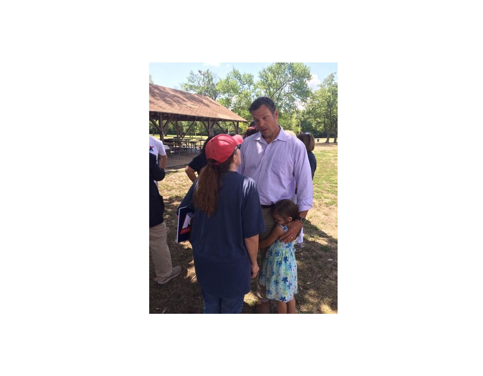 Kansas Secretary of State Kris Kobach’s campaign tour rolled into Salina on Tuesday afternoon. Kobach, who is running for governor, along with running mate Wink Hartman spoke to supporters during a stop at Oakdale Park.