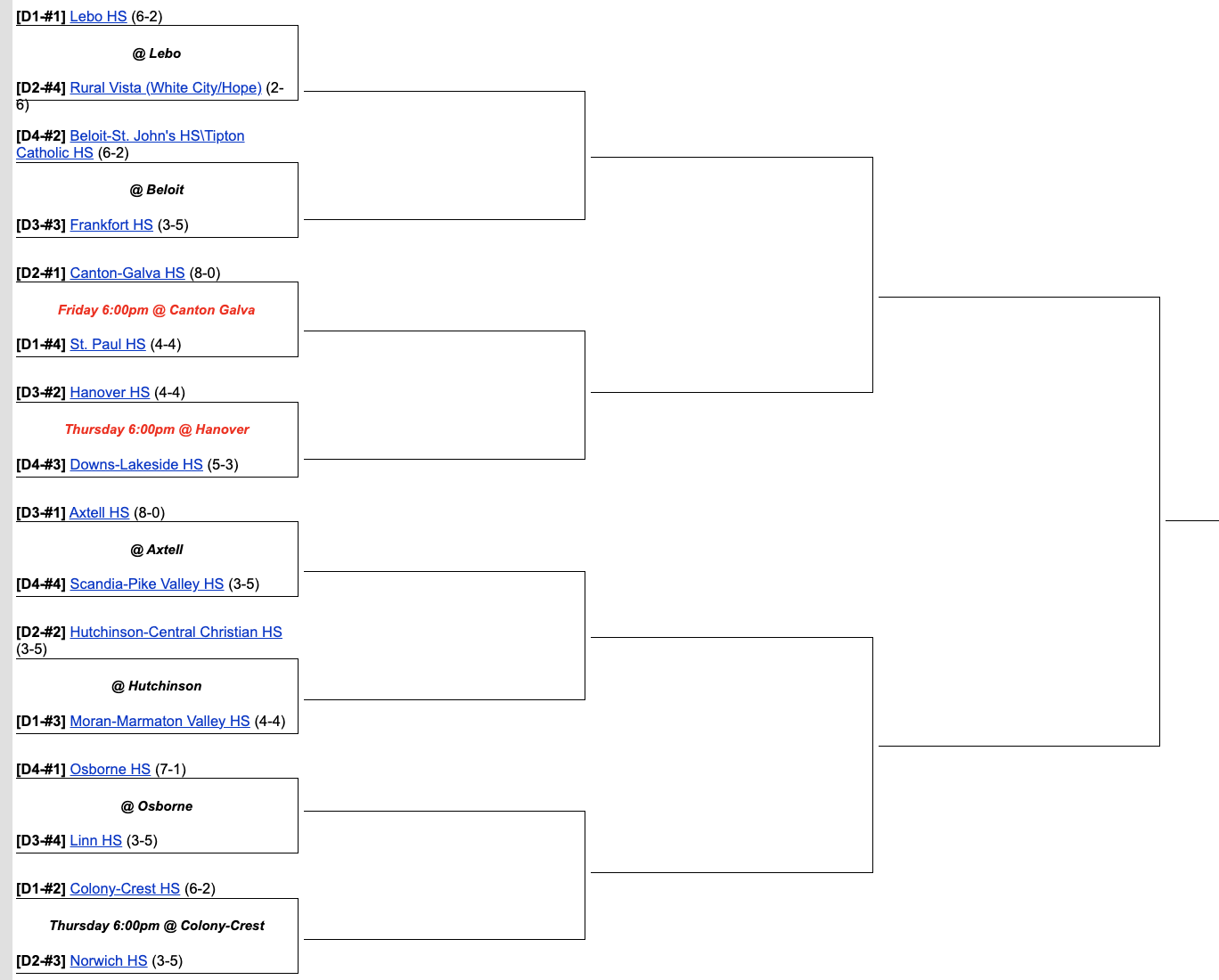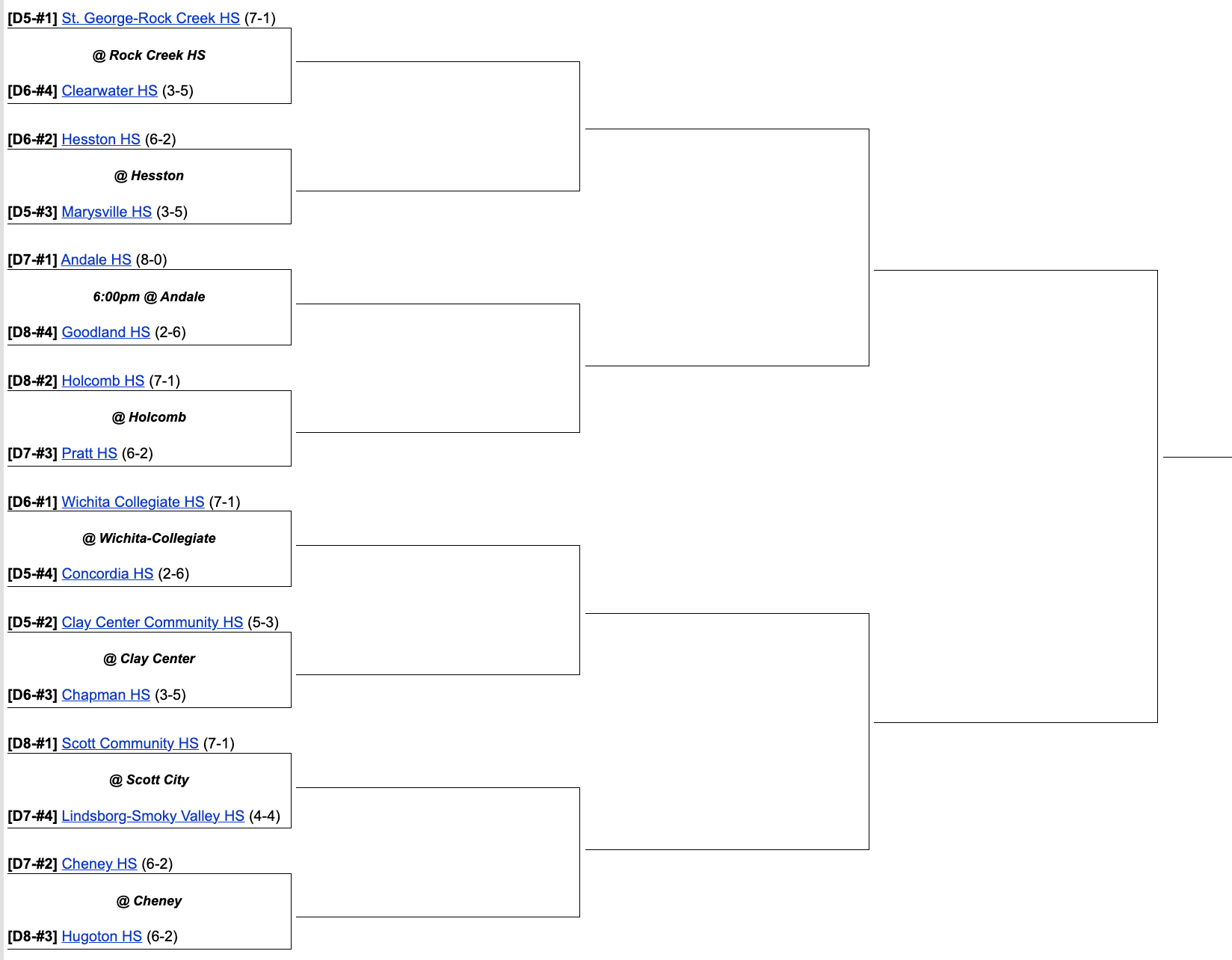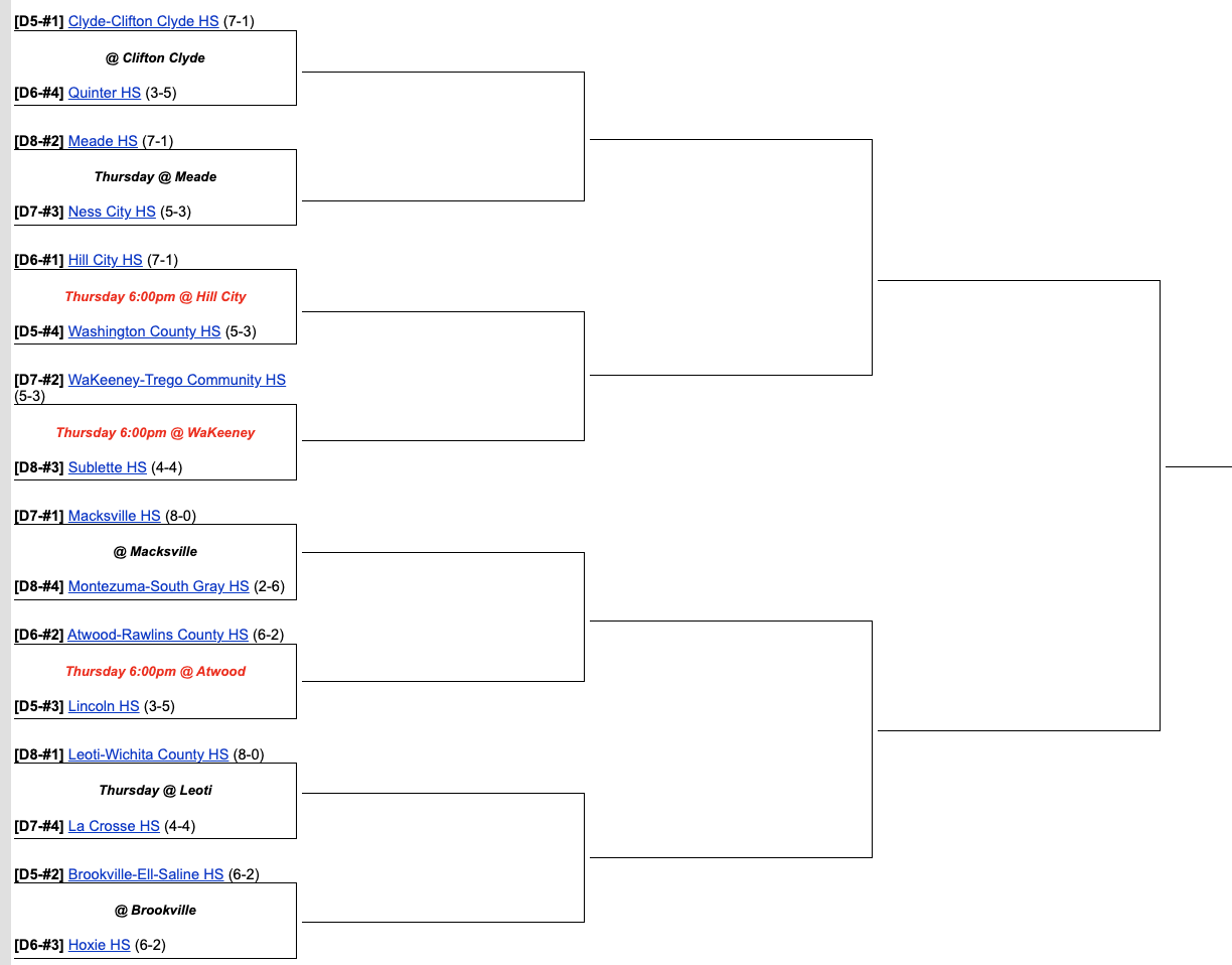 Clifton-Clyde is the top-seed out of District 5. They will host Quinter. The teams have not previously met this season.