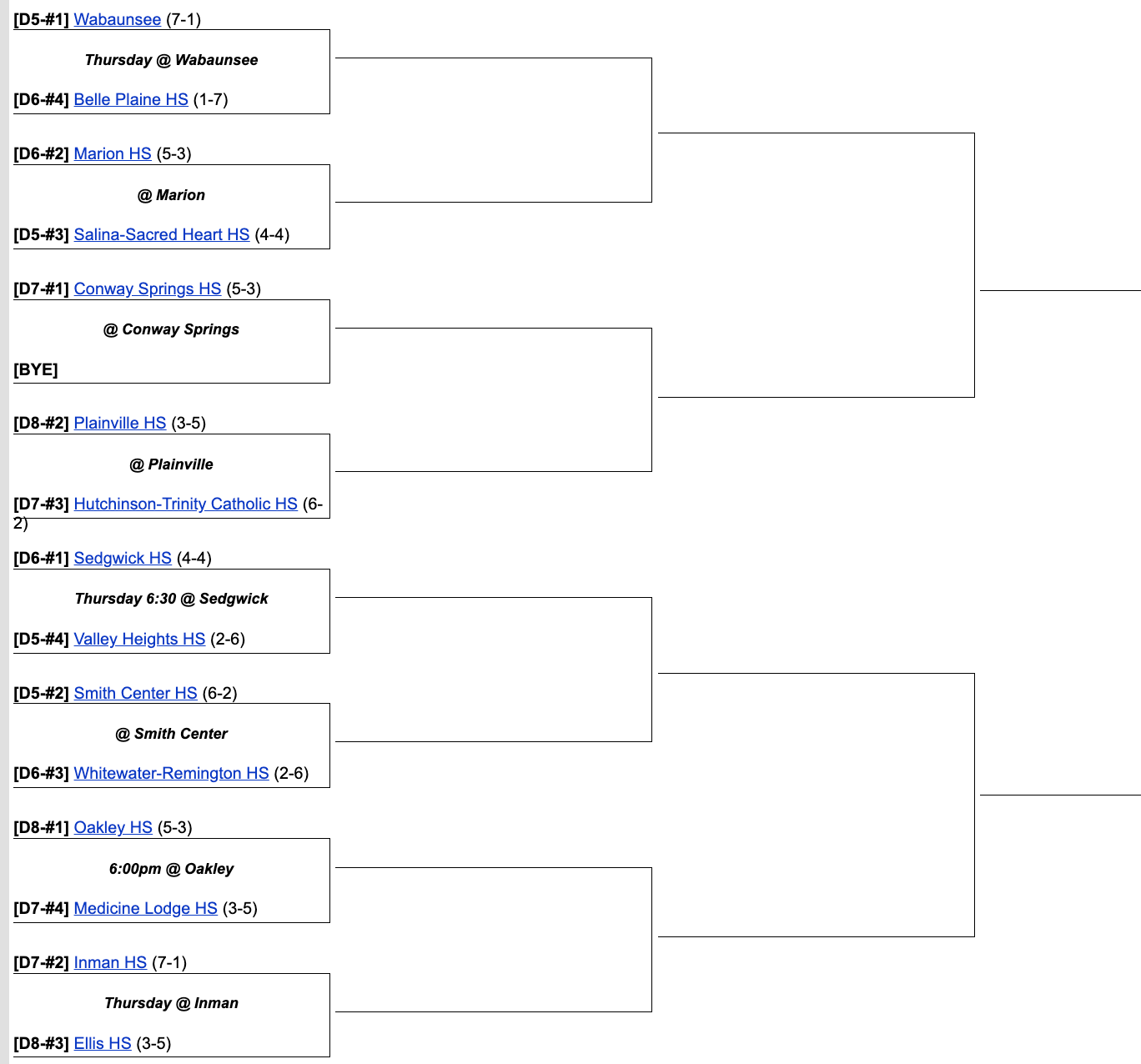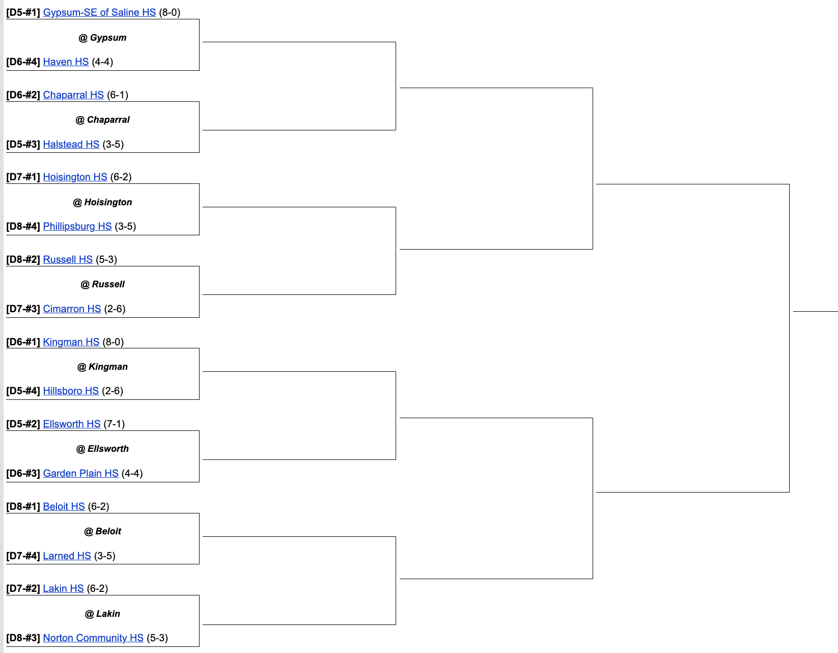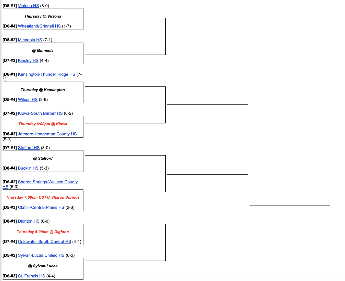 Clifton-Clyde is the top-seed out of District 5. They will host Quinter. The teams have not previously met this season.