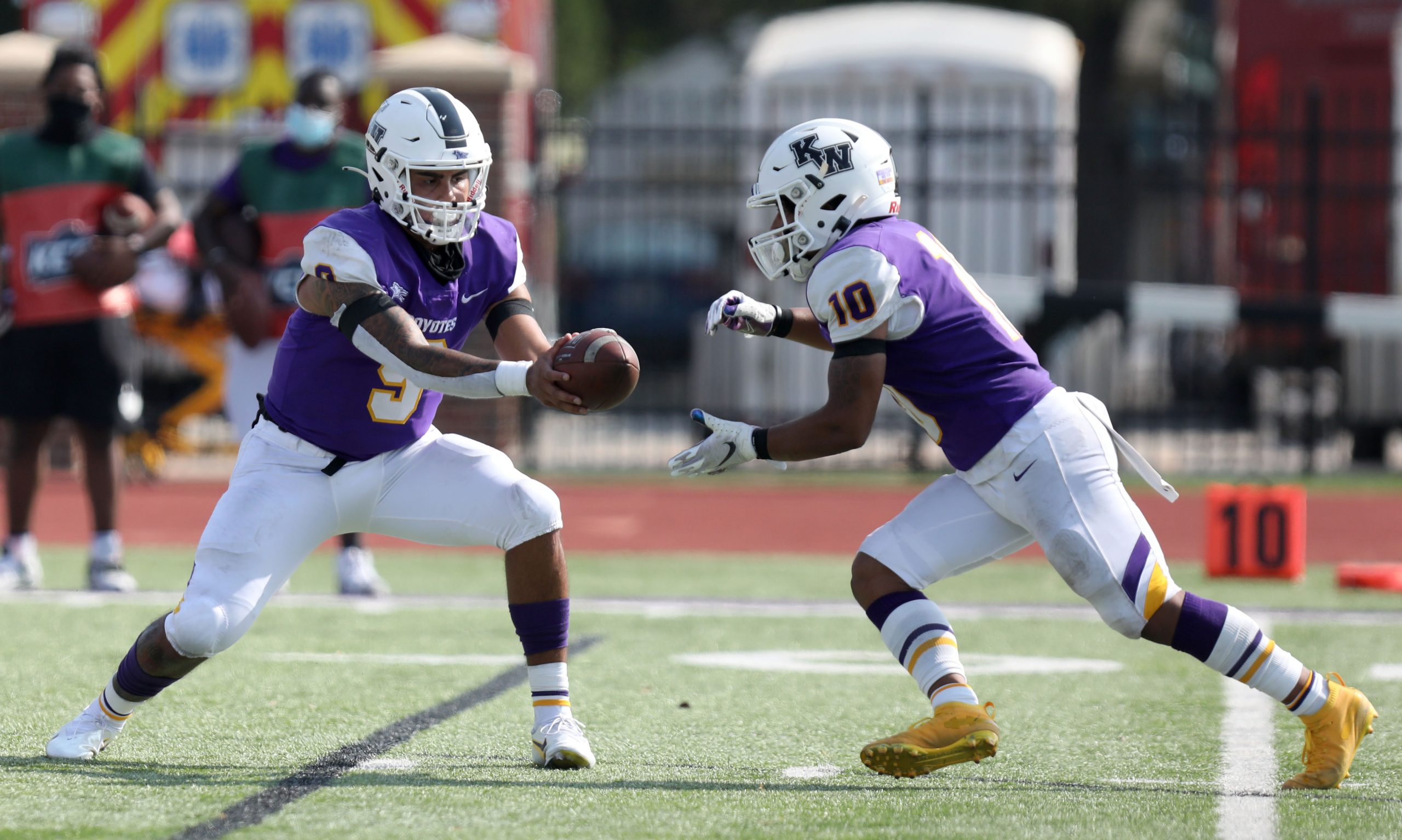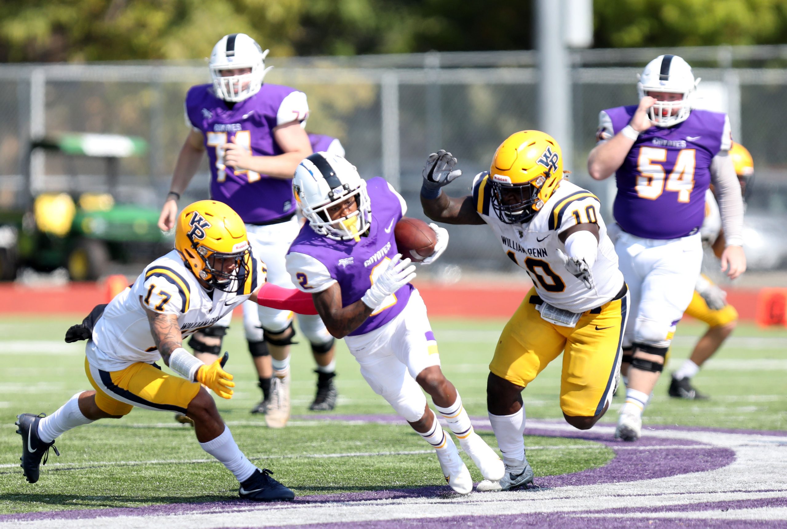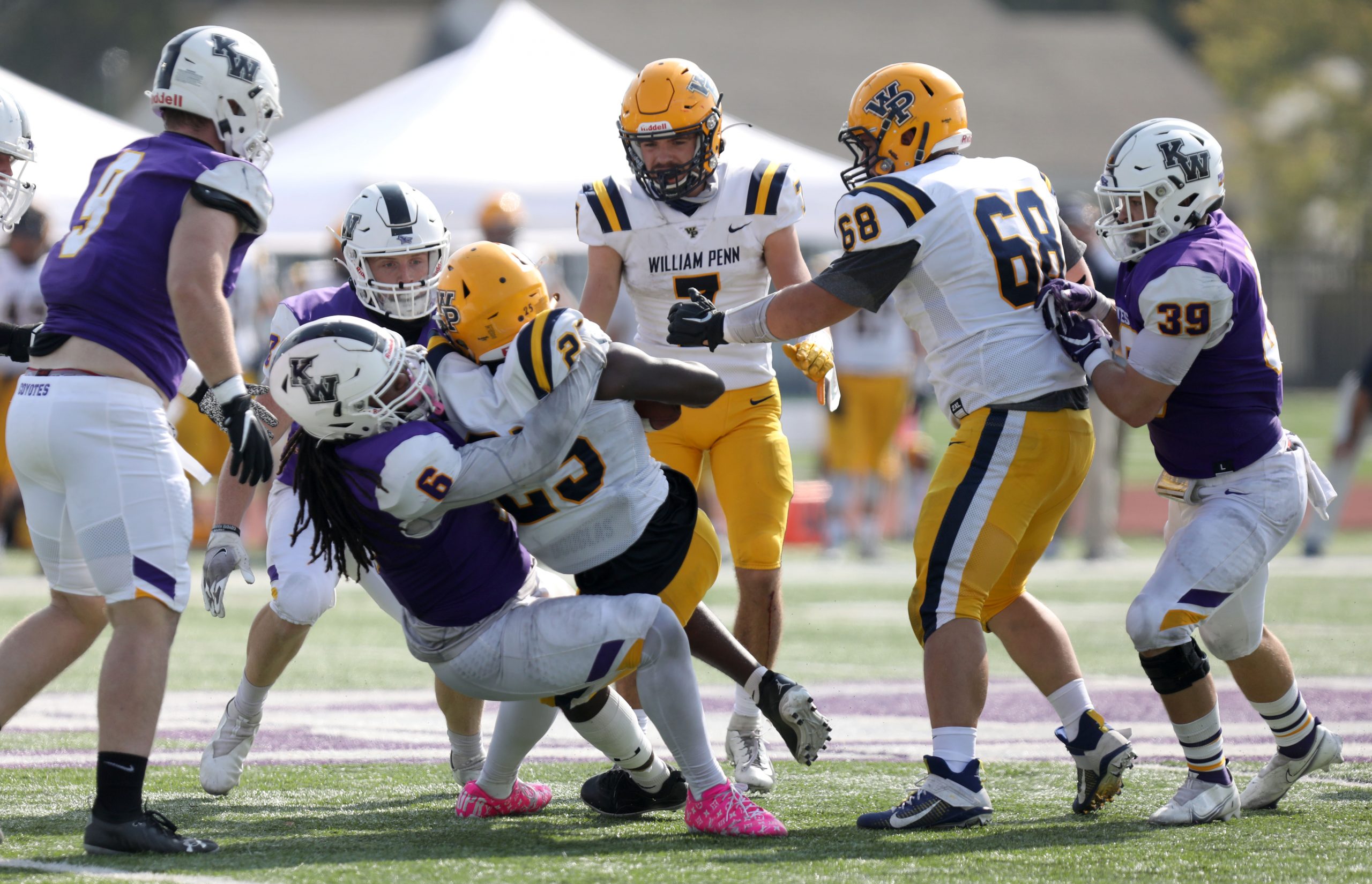 Hendrickson credited the defense with giving the team an early lift. Crehan completed a 65-yard pass to Adrian Aviles to the KWU 12-yard line on William Penn’s first offensive play, but the defense held and placekicker Austin Ogletree-Wolf missed a 30-yard field goal attempt, keeping the game scoreless.