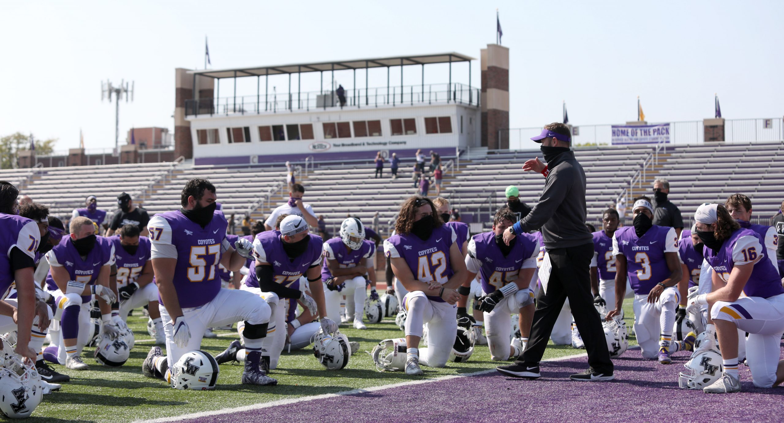 Sandovall scored from the 3 on the Coyotes’ next possession, capping a three-play, 50-yard drive. Randalle ended his sensational first-half performance – 248 yards passing – with a 9-yard scoring toss to Eren Jenkins (SR/Chicago, Ill.) with 25 seconds left.