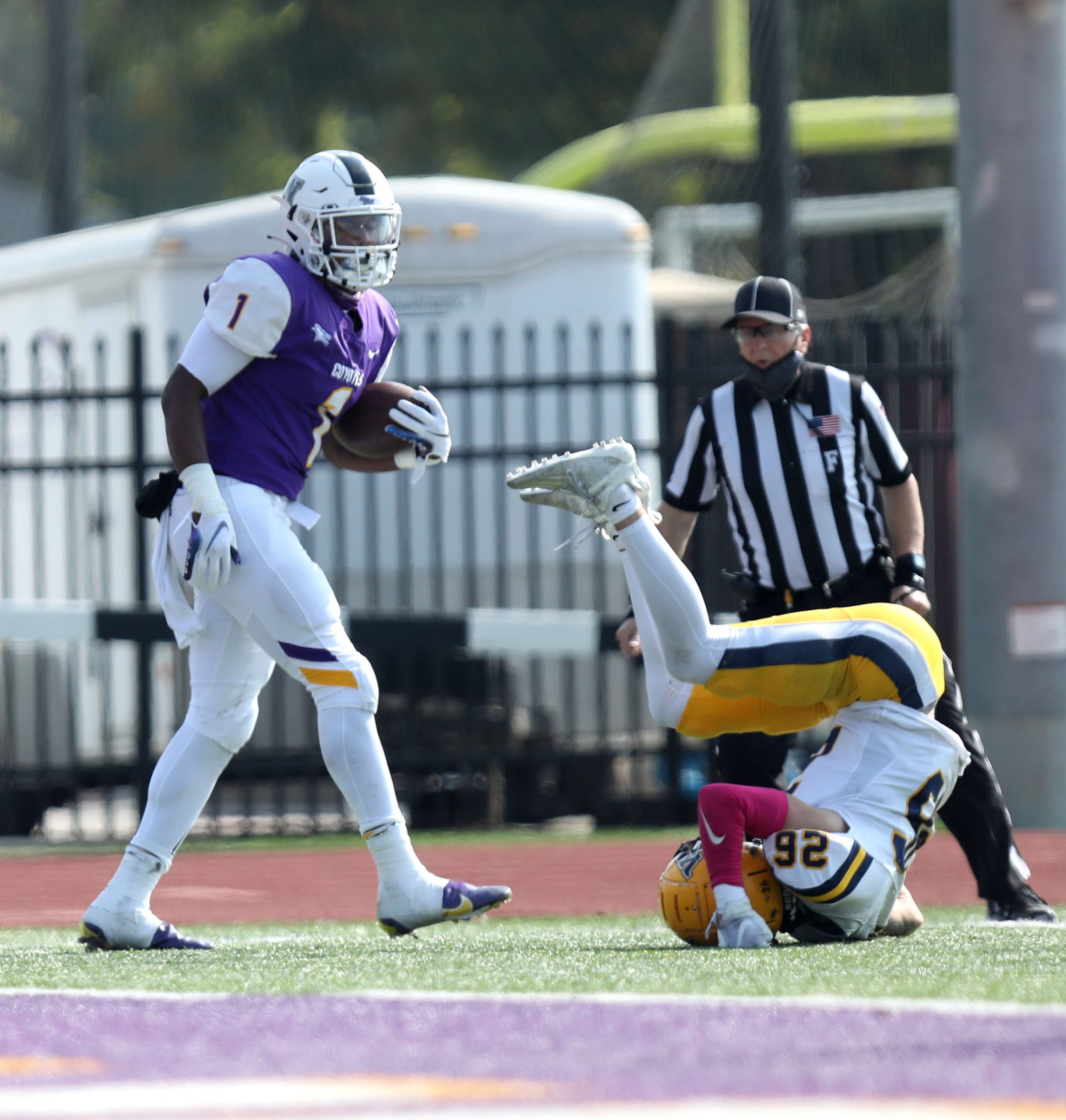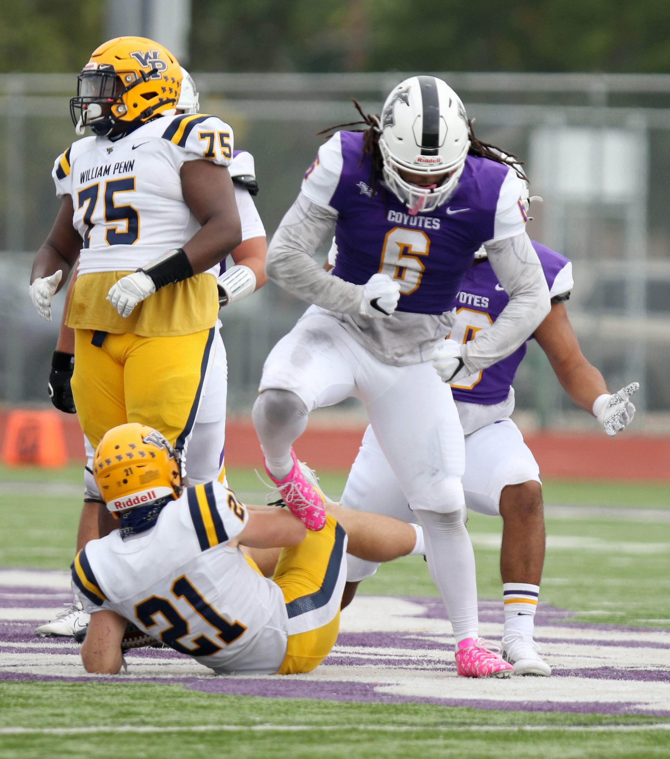 Randalle then hooked up with Stevie Williams (SR/Long Beach, Calif.) for a 45-yard touchdown – Williams leaping over a William Penn defender, grabbing the ball and backing untouched into the end zone – midway through the second quarter.