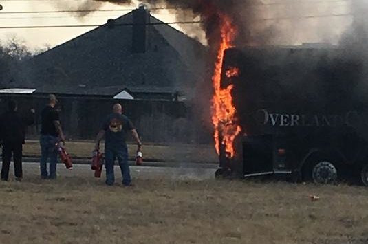 The team, which is competing in season-opening tournament in Texas in the Dallas area, was on its way to its first game of the season when the bus caught fire.