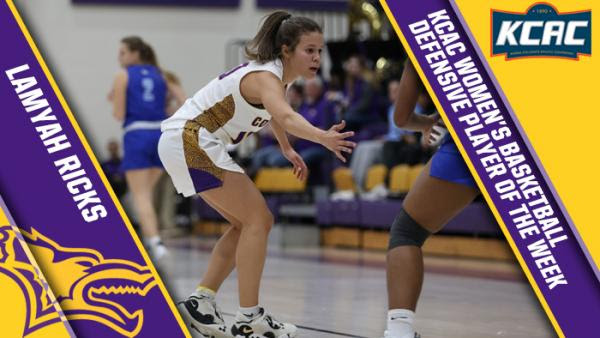 WICHITA – Kansas Wesleyan’s LaMyah Ricks (JR/Shawnee Mission, Kan.) has been selected as the KCAC Women’s Basketball Defensive Player of the Week for her efforts for the Coyotes last week. The KCAC player of the week program is selected by conference sports information directors and is presented by Equity Bank.