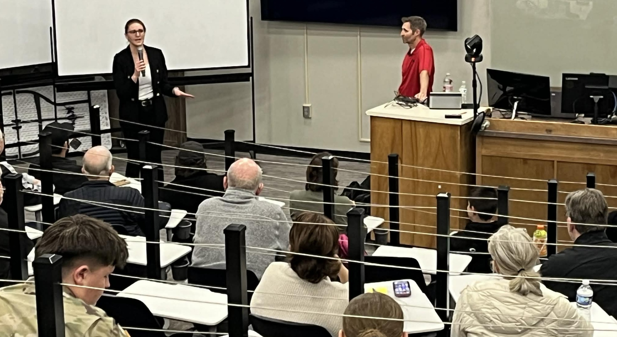 A crowd of about 100 people experienced a real storm fury on the campus of Kansas Wesleyan University Tuesday evening. National Weather Service Meteorologist Chris Jakub was in town to kick off the 2026 “Storm Fury on the Plains” spring severe weather safety and spotter class series.