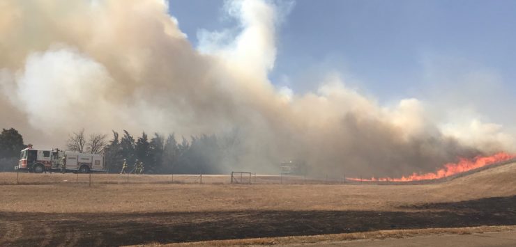 According to Kansas Highway Patrol Trooper Tod Hileman, a fire was burning just north of Hays moving south. Traffic along Interstate 70 was being rerouted because of zero visibility. Fire crews on scene were trying to stop the fire from spreading into parts of east Hays.