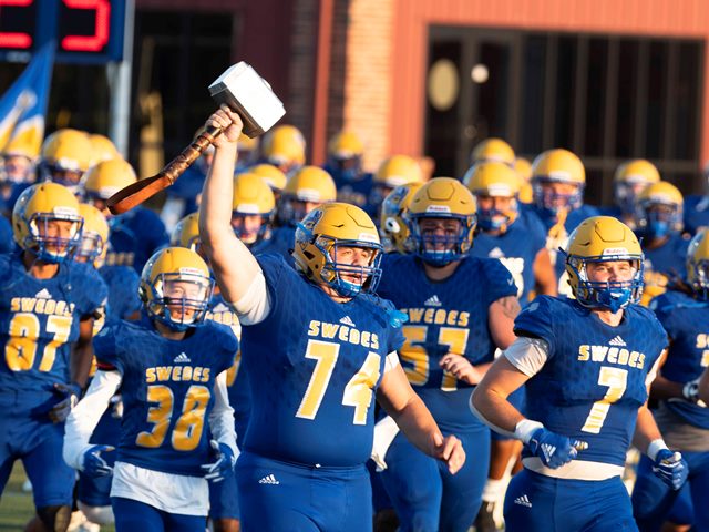 That’s when the Swedes’ defense–which had played one of its best games of the year–stood tall. The Swedes picked up a crucial sack on third down to force a Tabor punt with still more than one minute remaining in the game.