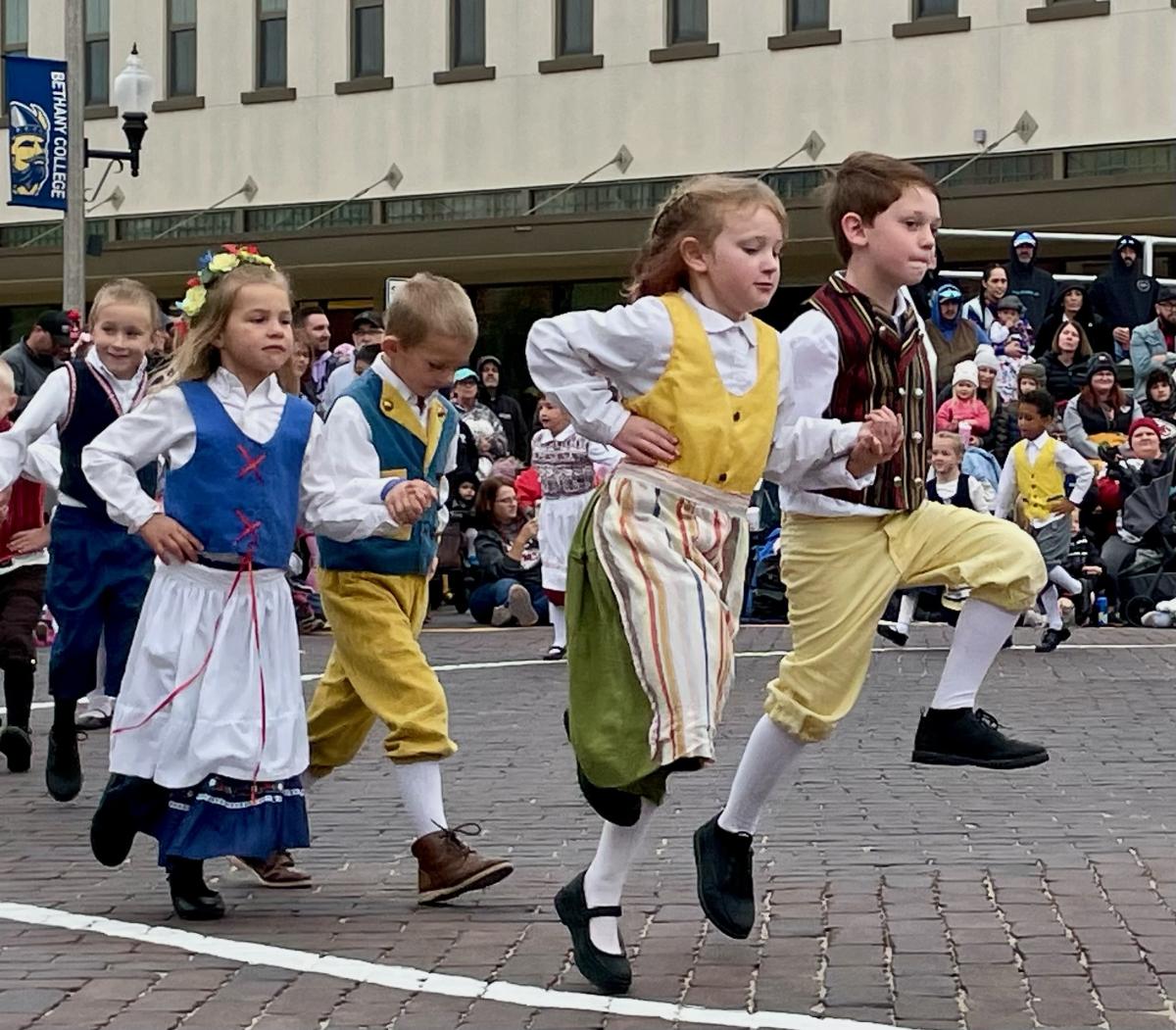 Lindsborg Swedish Folk Dancers glide onto Main Street to perform.