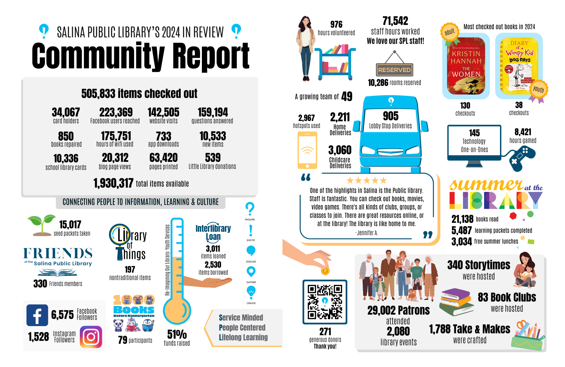 Salina Public Library is coming off a year of growth, engagement, and service to the community. With over half a million items checked out, the library continues to be a vital community resource for lifelong learning.