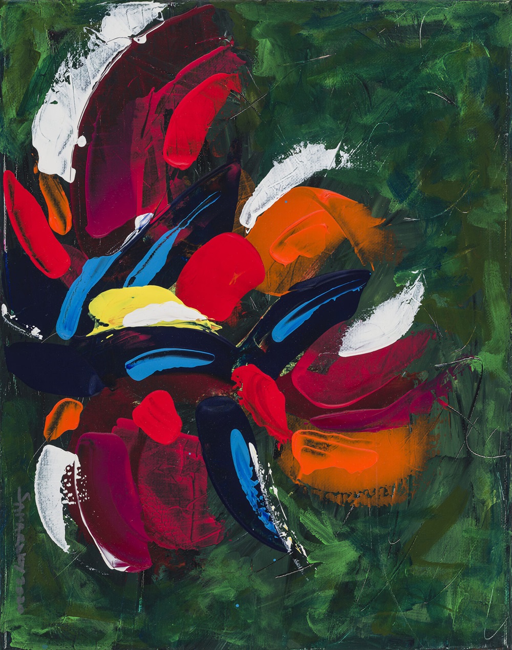 Elena will spend most of her time creating a series of new paintings inspired by Kandinsky, Chagall, and Malevich, whose work represents the USSR/Russian Ukrainian Avant-Garde movement. She will reflect on how their work impacts her color palette and composition as well as reflection on her own Ukrainian heritage and self-identification in her own work. This artwork of Elena’s is an acrylic titled “Beauty and the Beast.”